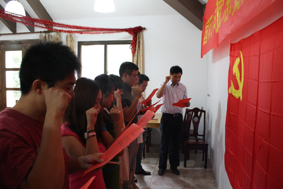 為了慶祝中國共產(chǎn)黨成立91周年,推進“黨員干部讀書年”活動的順利進行,促進黨建工作的扎實開展,6月26日下午,國際公司黨總支隆重召開全體黨員大會,集團副總裁兼國際公司董事長王學峰、黨總支班子成員及近40名黨員與會。年初以來,國際公司黨總支根據(jù)黨員隊伍的變化情況,經(jīng)過慎重醞釀,對所屬兩個基層支部書記的人選進行了調(diào)整,對各支部黨員的組成情況進行了重新安排,黨總支委員徐永生在大會上宣布了上述決定,接著進行了新黨員入黨宣誓。大會就“黨員干部讀書年”活動的開展進行了再動員,并向兩個黨支部發(fā)放了一批書籍。大會還安排了座談環(huán)節(jié)。在陶核副書記代表黨總支對近年來的黨建工作做了回顧和總結(jié),并就下一步的黨建工作及開展“基層組織建設(shè)年”活動進行了部署之后,黨總支聽取了全體黨員對黨建工作的意見和建議。總支書記吳應宏結(jié)合今年的外貿(mào)及業(yè)務形勢,對全體黨員提出了新的要求,希望全體黨員要更加發(fā)揮好先鋒模范作用,為公司的全面建設(shè)上新臺階做出新的貢獻。最后,集團副總裁兼國際公司董事長王學峰勉勵大家越是在困難的條件下,越是要堅定信心,排除干擾,為公司的業(yè)務的發(fā)展做出新的貢獻。