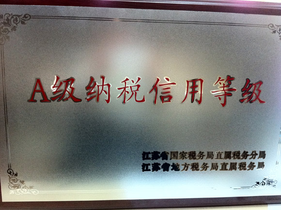 我司被江蘇省國稅、地稅評為A級納稅信用等級企業(yè)