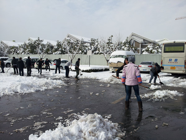 2013年2月18日夜我市迎來(lái)了今年最大一場(chǎng)降雪,19日早上,在行政部的組織下,公司員工冒著雪后嚴(yán)寒集體掃雪,多名領(lǐng)導(dǎo)身先士卒。同事們不畏嚴(yán)寒,揮舞著鐵鍬和笤帚,相互配合,一點(diǎn)點(diǎn)地將積雪和冰層鏟起堆放路邊,在歡聲笑語(yǔ)中掃出了一條暢通的平安大道,方便了人員及車輛通行,也為公司的交通安全和正常工作提供了保障。
