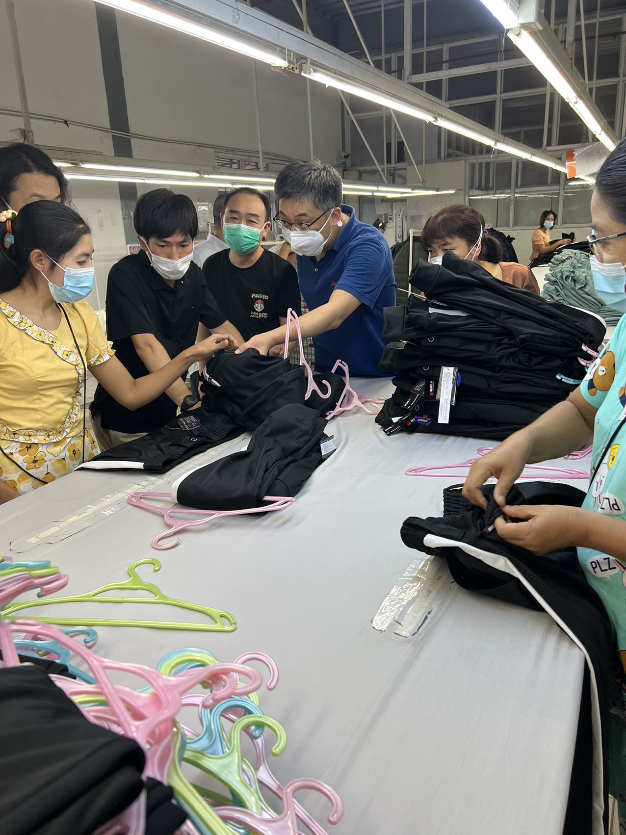 11月21日,楊新宇攜支援工廠業(yè)務(wù)骨干抵達(dá)緬甸仰光公司生產(chǎn)基地。在緬期間,楊新宇會(huì)見了長(zhǎng)期合作的日本客戶。人生不相見,動(dòng)如參與商;今夕復(fù)何夕,共此燈燭光。三年來(lái),雙方只能通過(guò)視頻、電話等方式進(jìn)行交流,此番能在緬甸相見雙方均表示這是老友重逢、再開新局的一次重要相逢。隨后,楊新宇陪同日本客戶對(duì)公司在緬生產(chǎn)基地進(jìn)行考察,并對(duì)生產(chǎn)基地“單件流”精益化生產(chǎn)改造進(jìn)行闡釋。在走訪過(guò)程中,日本客戶對(duì)公司在緬生產(chǎn)基地優(yōu)秀的管理水平、先進(jìn)的生產(chǎn)工藝和精良的生產(chǎn)效率表示認(rèn)可,并就雙方接下來(lái)合作細(xì)節(jié)、樣品款式等進(jìn)行深入探討。